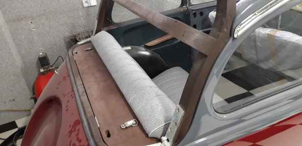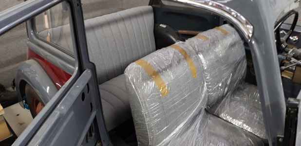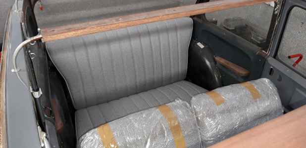 Wizyt u tapicera było kilka. Wiadomo najpierw ustalenia i wybór materiałów, nastepnie ustalenie szczegółów takich jak np. brak wkrętów na boczkach do drzwi. W oryginale boczki do drzwi były spinane metalowymi zatrzaskami, a na zdjęciach w necie we wszystkich adlerach są podkładki i wkręty. Nie wygląda to estetycznie cry.  To samo dotyczy pszeszyć na kanapach - linie szwów na opieradle powinny się schodzić z liniami na siedzisku. To są szczegóły, których należy dopilnować, żeby później nie raziły i nie denerwowały. W tej chwili są uszyte tylne kanapy i przednie sidzenia. smileJestem zadowolonysmile. Na drzwi ,tylne boczki jeszcze muszę poczekać, no i oczywiście dach. Nie mogę się doczekać efektu końcowego.
