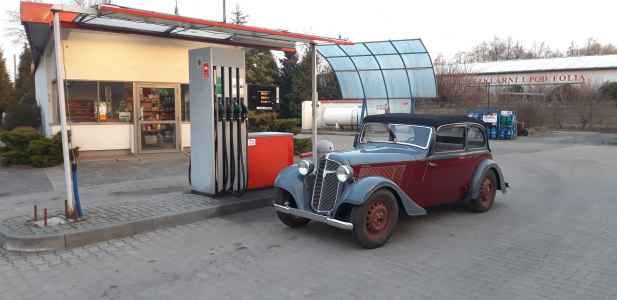 Po odbiorze Adlera od tapicera pierwsza wizyta na stacji benzynowej - do pełna.