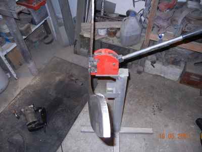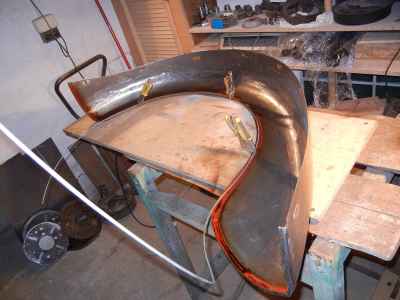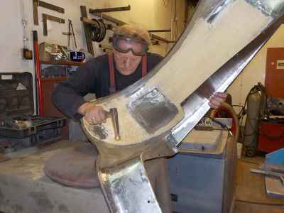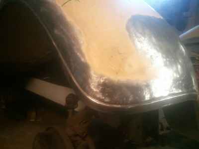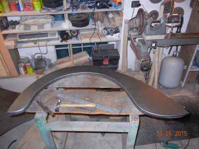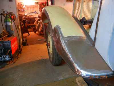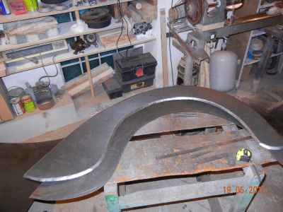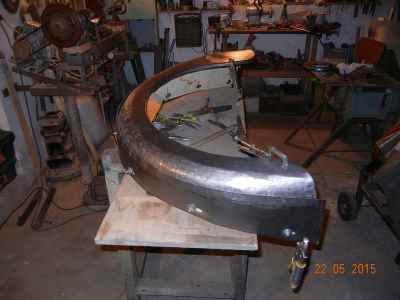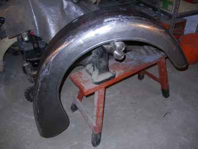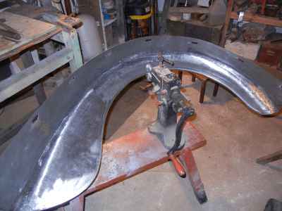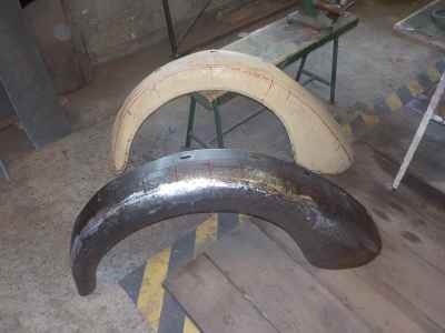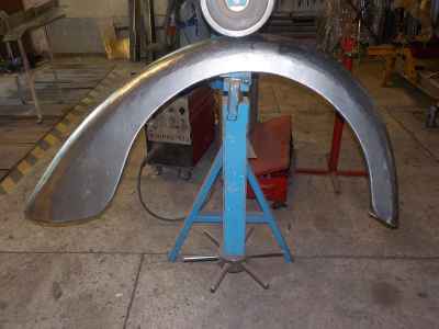 Po pospawaniu obu części, błotniki wyobliłem na kole angielskim,