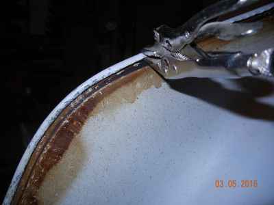 wytłoczyłem ranty oraz zawinąłem drut dla wzmocnienia brzegów.