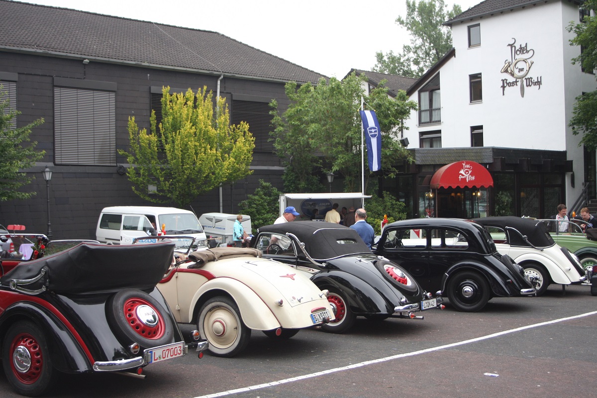 W tym roku 37 spotkanie AMVC -ADLER odbyło się w miejscowości Wiehl.W pięknej krainie Oberberg w sercu Nadrenii – Północnej Westfalii. Trzy dniowy pobyt, oraz przejechane kilometry warte były wysiłku. Wszystkie pojazdy oglądane do tej pory na stronach internetowych można było zobaczyć z bliska , dotknąć , ba – nawet posłuchać szmeru pracy ich silników. W sobotę rano na parkingu dworca w Wiehl odbył się test zręcznościowy, podczas którego mieszkańcy Wiehler oraz przybyli goście mogli podziwiać zręczność kierowców oraz doskonałą sprawność tych starych pojazdów. Tak,-pojazdów bo oprócz samochodów, motocykli marki Adler w rajdzie brały udział  również rowery. Polskim akcentem były dwa rowery – adlery wystawione przez pana Wojtka M.  godnie reprezentującego Automobilklub Śląski. Rowery wystawione przez p.Wojtka