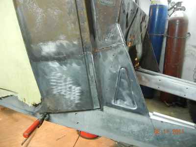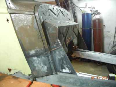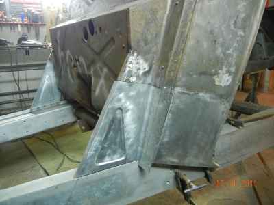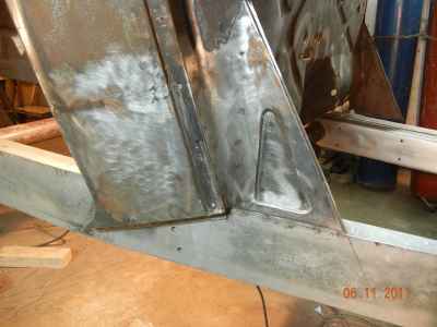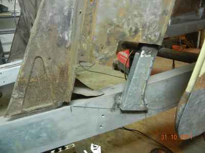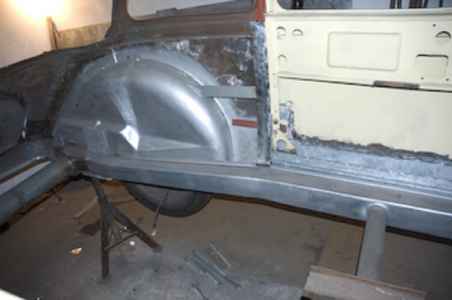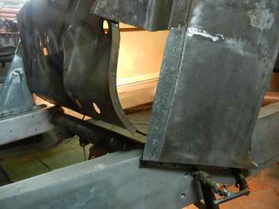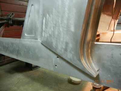 Jak widać na załączonych zdjęciach stan blacharki jest kiepski, nie należy się jednak załamywać tylko brać się ostro do pracy. Najpierw należy wykonać reperaturki blacharskie zgodne z oryginałem, następnie je wstawić w miejsce wyciętych starych blach. W tym konkretnym przypadku, reperaturki jak i cały pozostały węzeł łączący nadwozie z ramą, zostały wykonane z blachy ocynkowanej. Mam nadzieję, że dzięki temu ten Adler przetrzyma ze sto lat bez napraw blacharskich – rama jest też wykonana z blachy ocynkowanej.